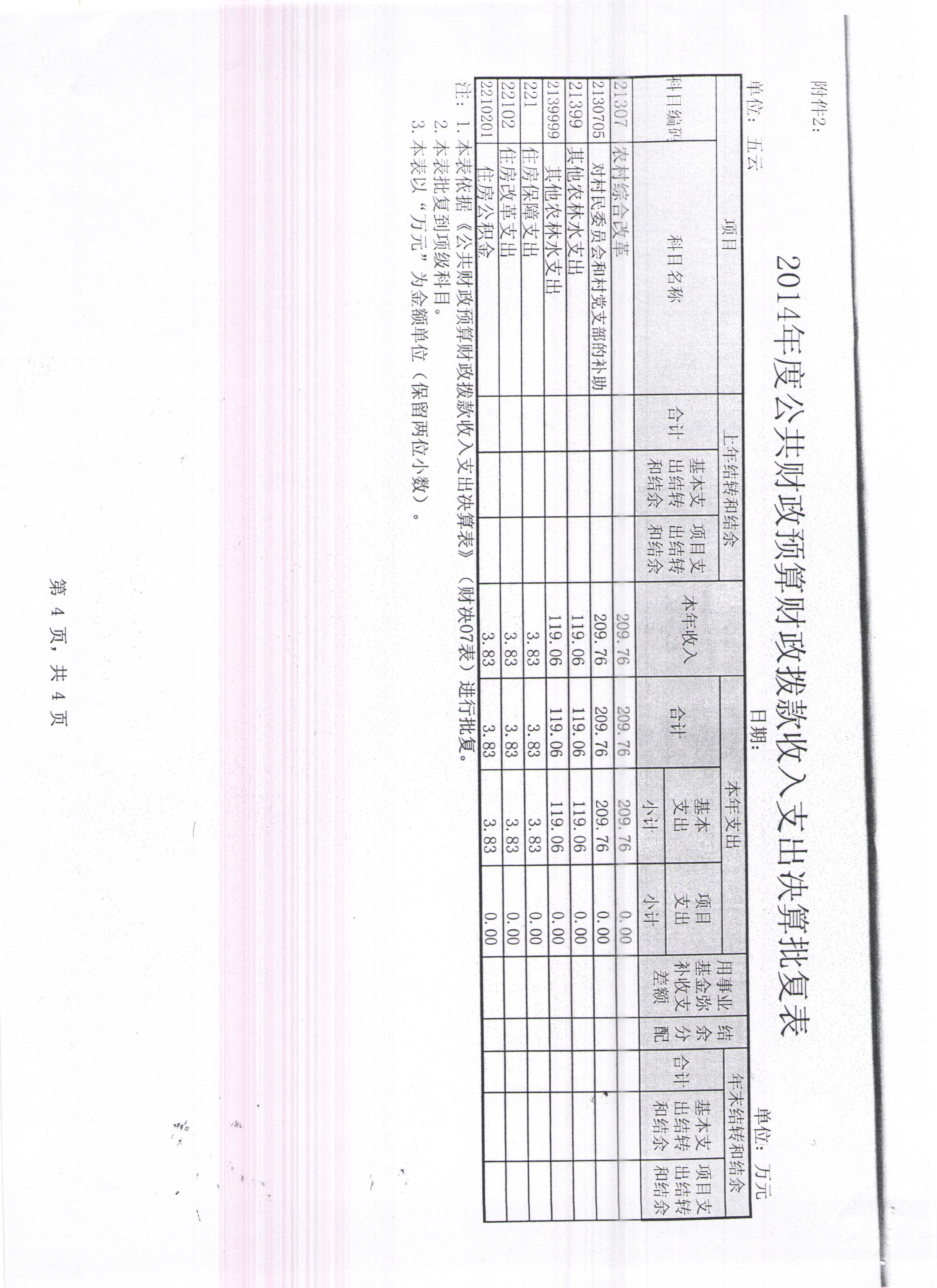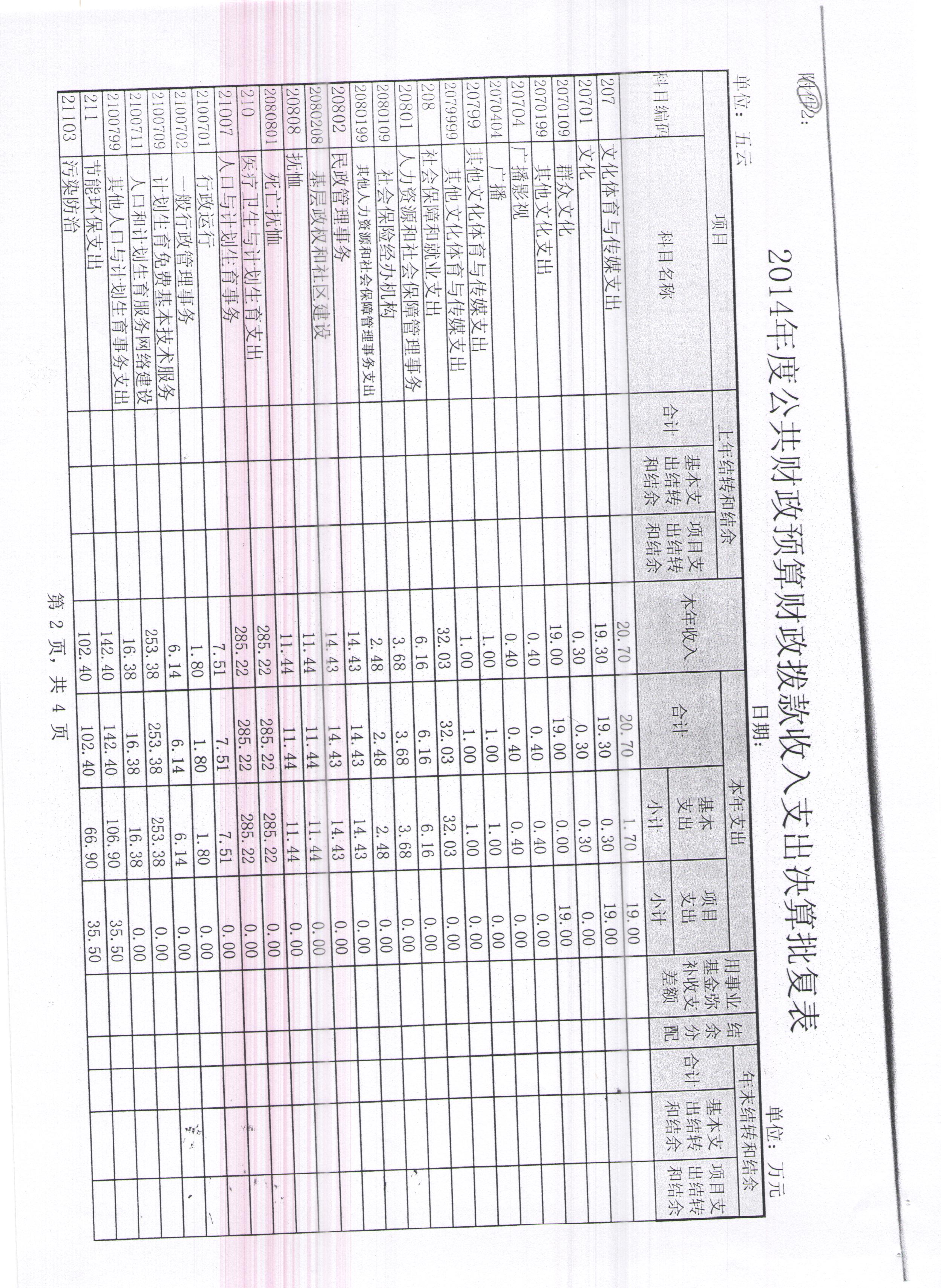 五云镇2014年度公共财政预算财政拨款收入支出决算情况表