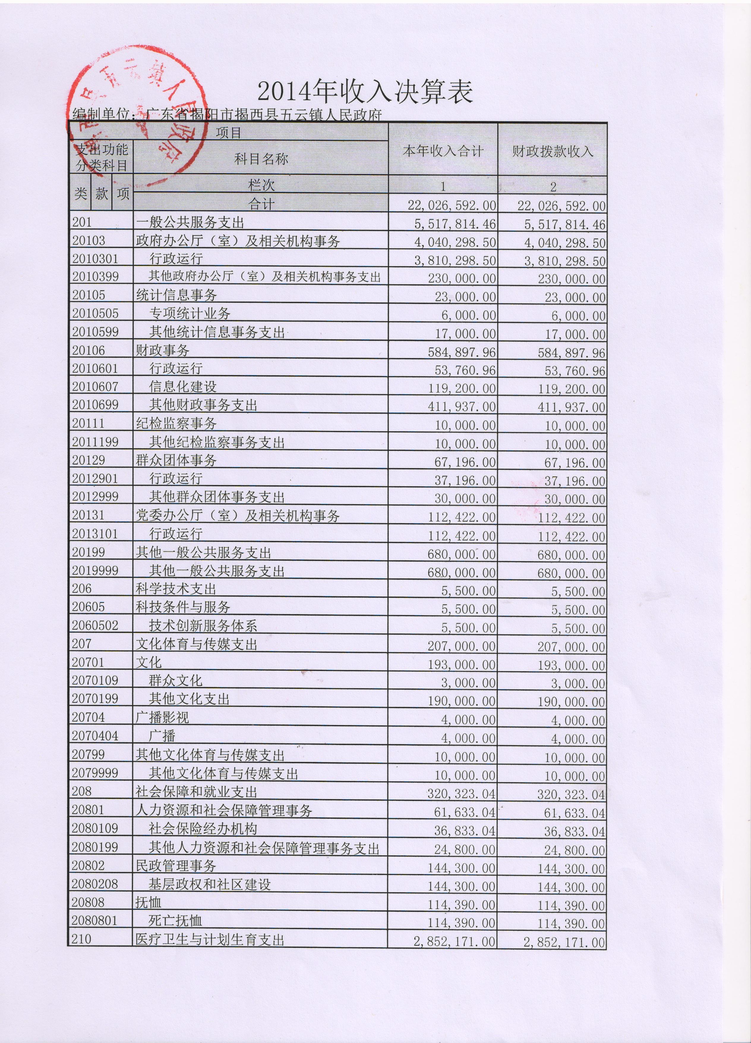 2014年收入决算表一