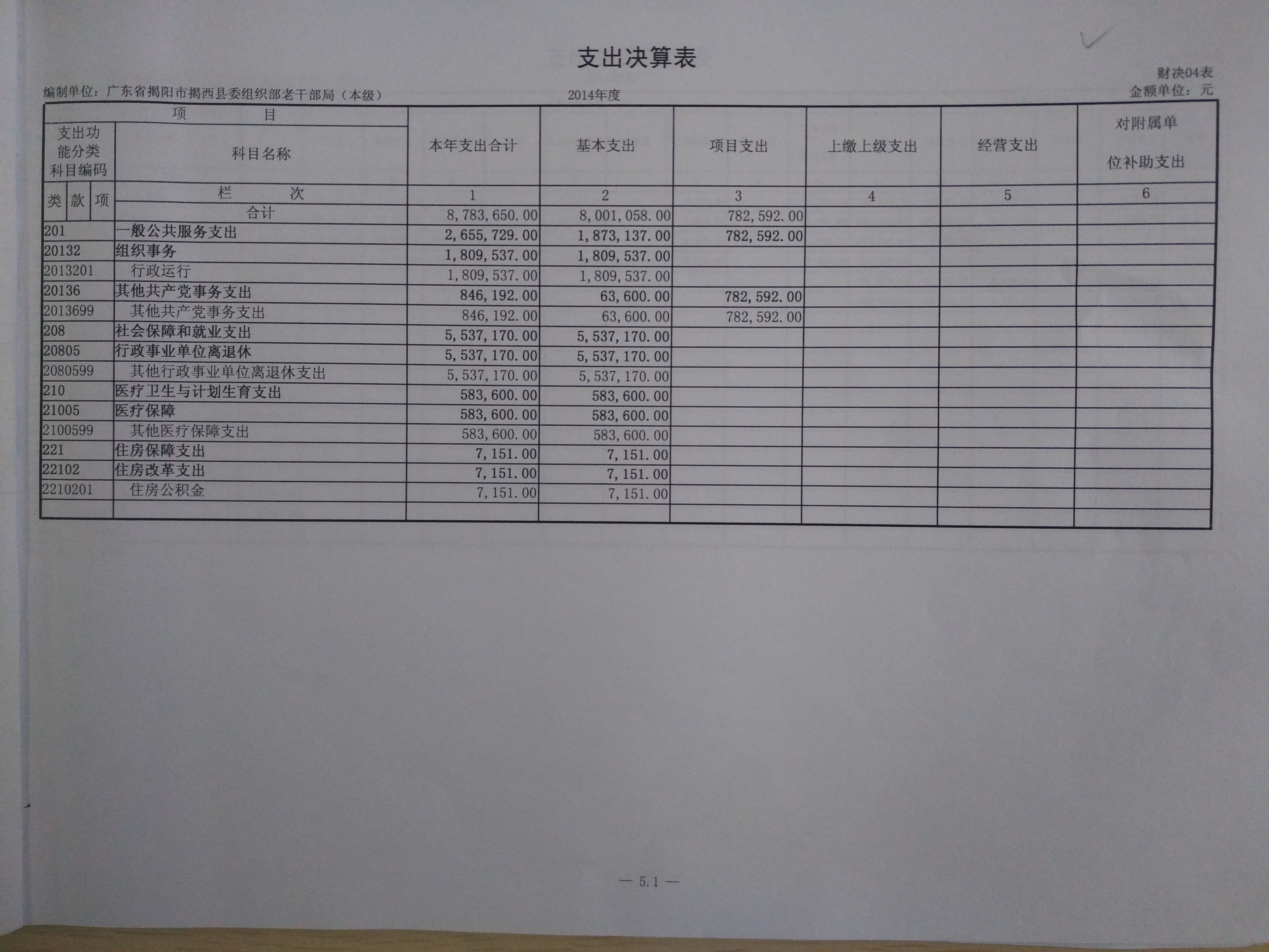 一、部门基本情况 老干部局属正科级行政单位,局内设业务股、综合股,下设揭西县离退休干部活动中心,揭西县离退休干部第二活动中心。局共有在职干部职工、离退休干部及其他人员46人,其中在职人员14人,离退休人员26人,遗属供养6人。代发离退休费的企业离退休干部人员114人。 二、部门决算收支情况分析 1、2014年收入合计878.365万元,其中财政拨款878.365万元。 2、2014年支出合计878.365万元,其中基本支出800.1058万元,项目支出78.2592万元。 3、收入支出与上年度对比分析。 2014年决算收入合计878.365万元,比2013年决算数(下同)减少5.46%;2014年支出合计878.365万元,比2013年减少5.46%。 三、“三公经费”情况 2014年我局“三公经费”支出7.9157万元,同比上年减少,公务接待费和公务用车运行费相比上年度分别减少5.54%和10.55%。主要原因是近年来单位领导对预算执行情况严格把关,加强支出管理,厉行节约,确保全年预算支出不超过指标,不给财政增加压力。 |