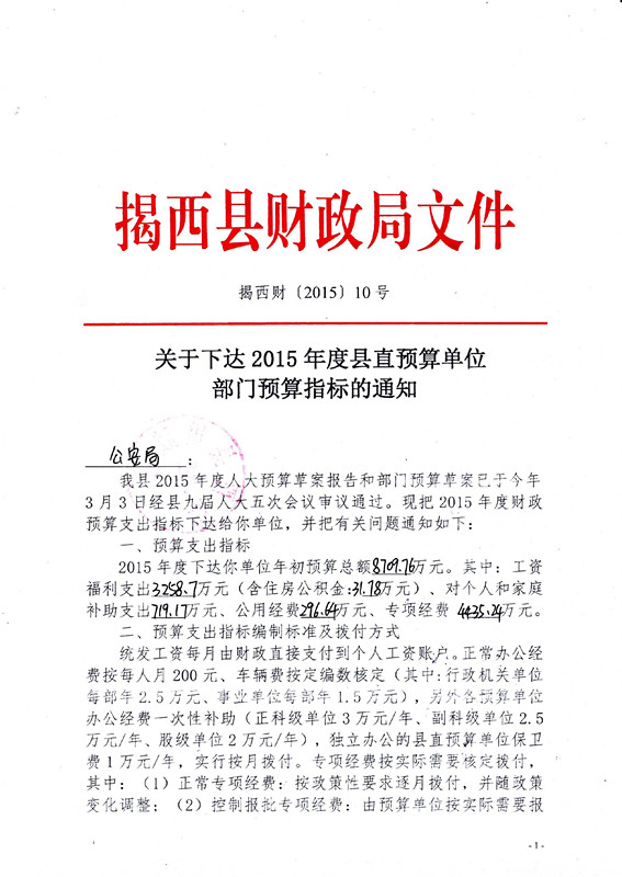公安局2015年度部门预算