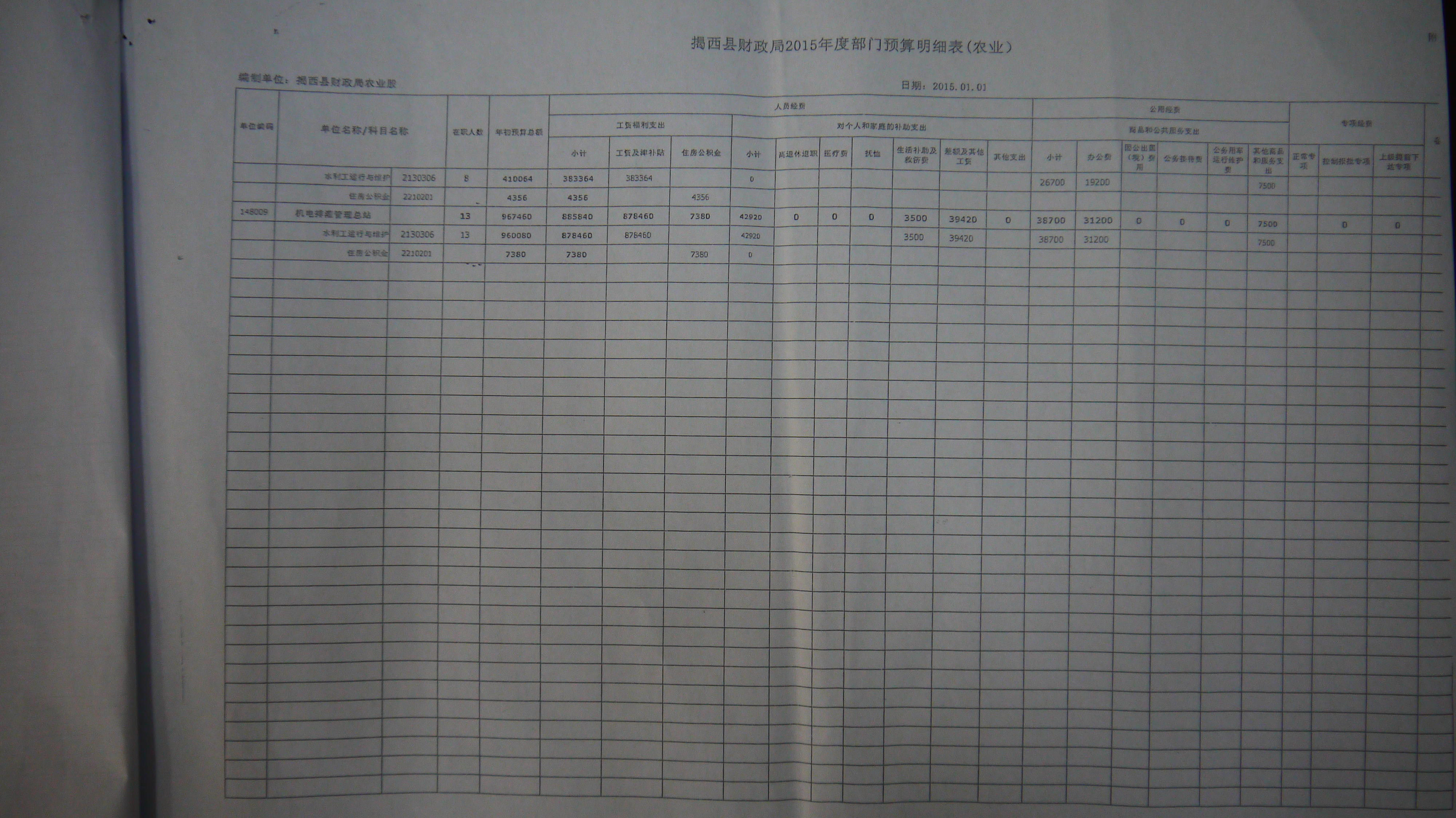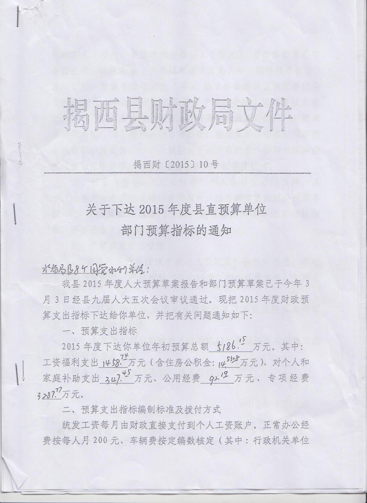 2015年度单位年初预算总额5186.15万元。其中工资福利支出1458.74万元(含住房公积金14.5308万元)、对个人和家庭补助支出347.45万元、公用经费92.19万元、专项经费3287.77万元.