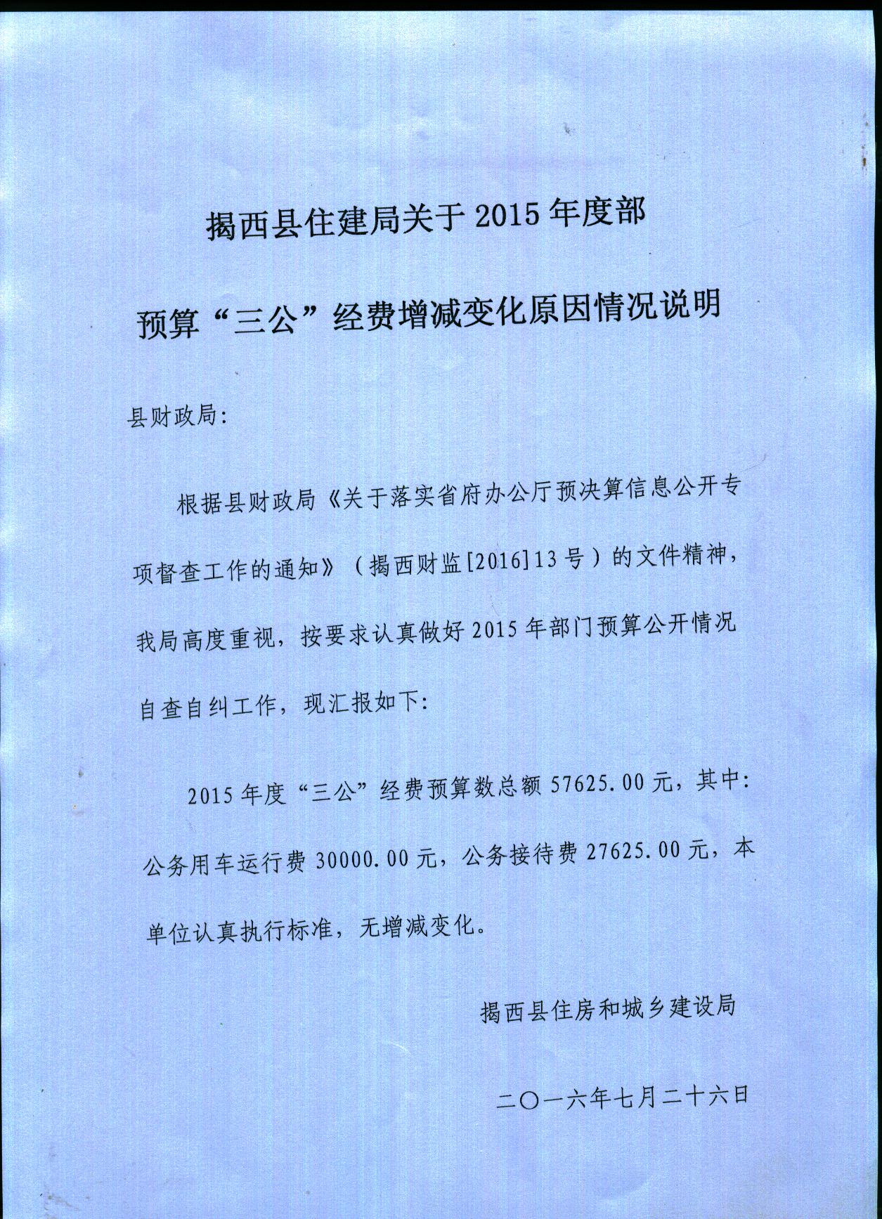 揭西县住建局关于2015年度部门预算“三公”经费增减变化原因情况说明