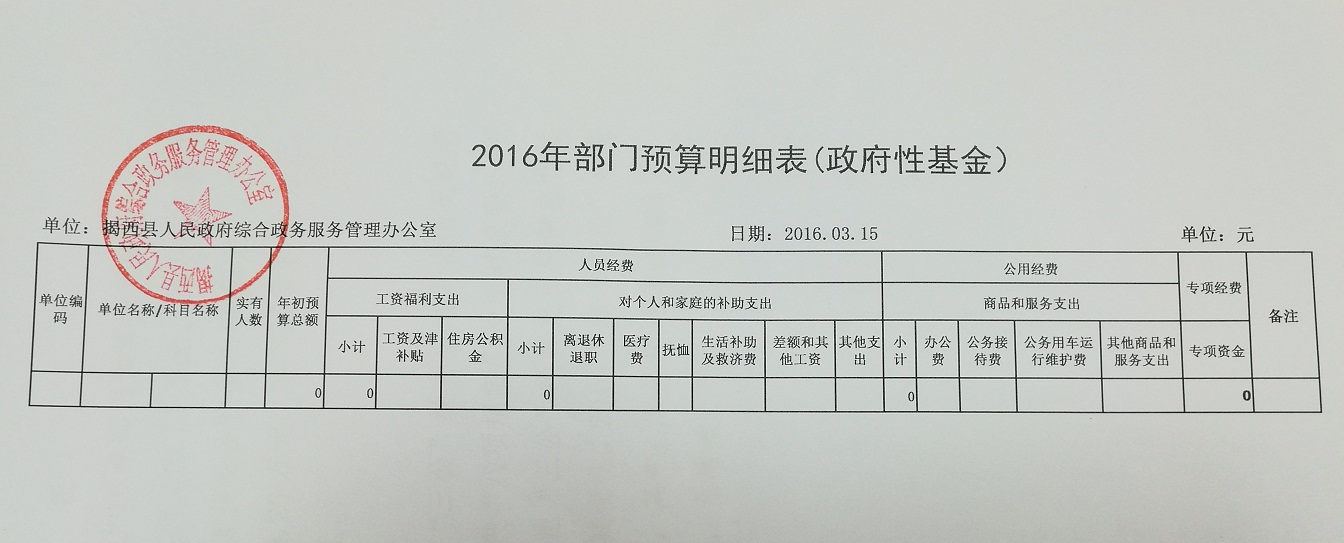2016年部门预算明细表(政府性基金)