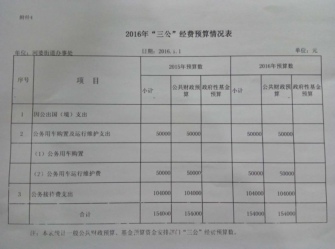 2016年“三公”经费预算情况表