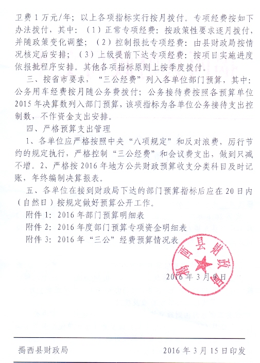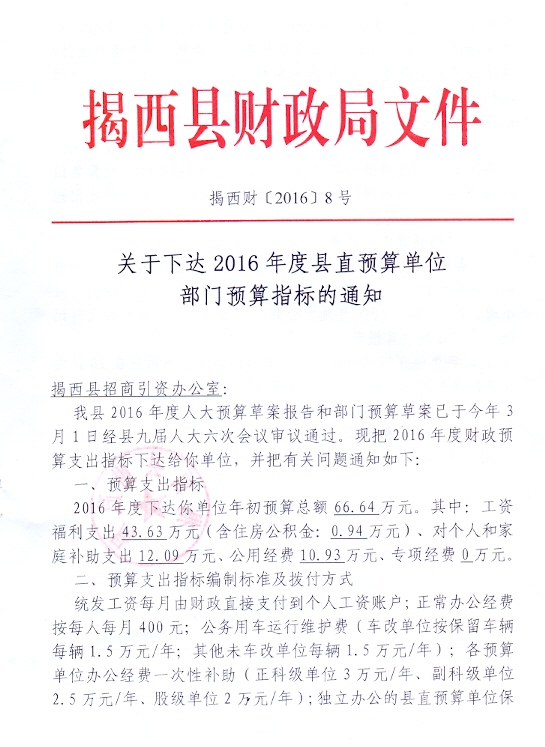 关于下达2016年度县直预算单位部门预算指标的通知