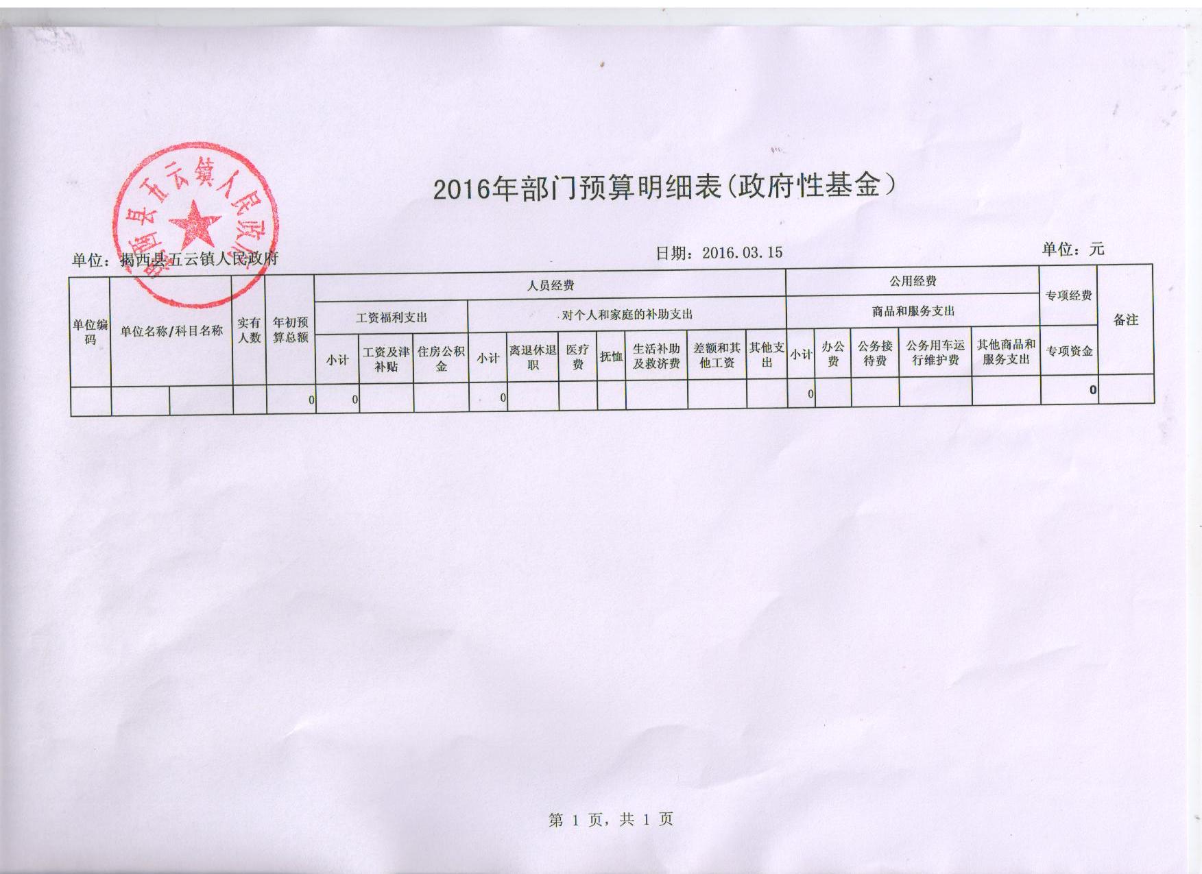 2016年部门预算明细表(政府性基金)