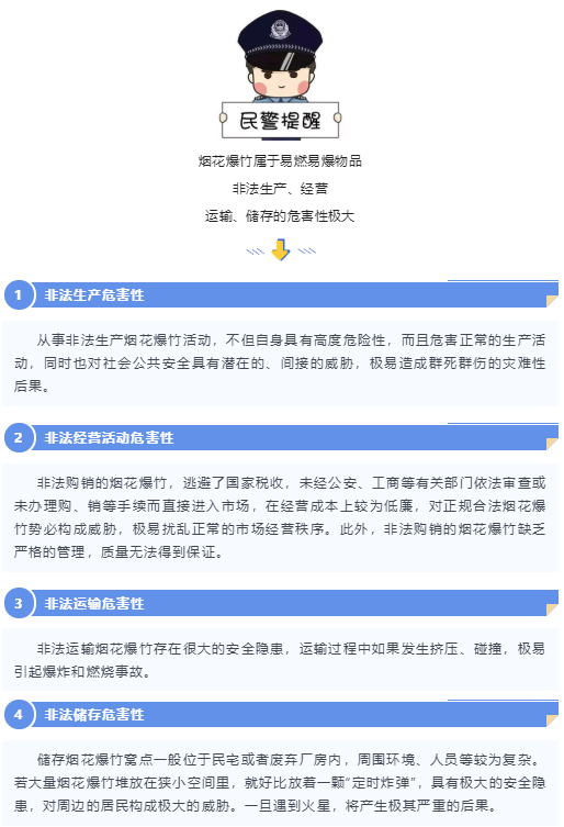 岁末年终,揭西县公安局全面加强对非法生产、销售、储存烟花爆竹的查处力度,全力消除辖区安全隐患,1月9日,成功查获一起非法储存烟花爆竹案,抓获违法行为人1名,现场查扣非法储存的烟花爆竹236箱。