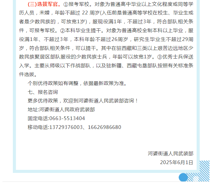 河婆街道人民武装部的公开信