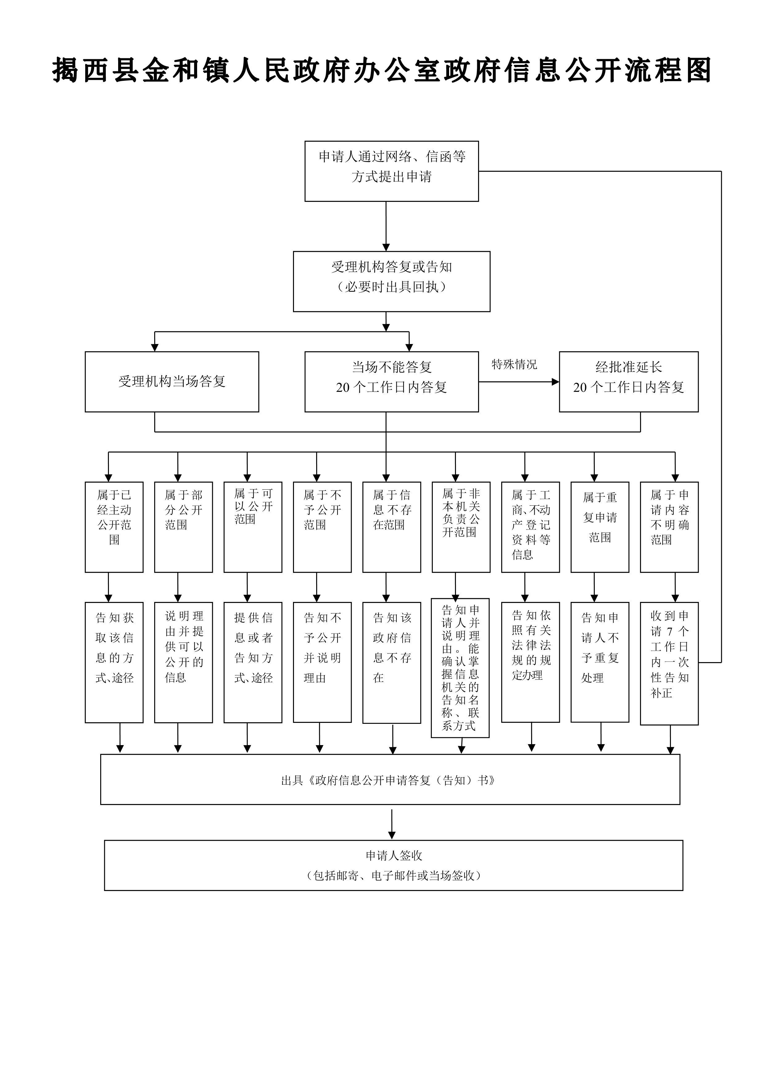 经初审申请符合受理各项规定的,将根据不同情况作出答复,详见揭西县金和镇人民政府办公室政府信息公开申请处理流程图(附件2)。