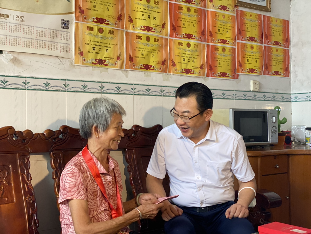 在老党员蔡艳霞家中,刘端雄同老人亲切交谈,详细询问老人的身体状况、生活情况,为老人颁发并佩戴“光荣在党50年”纪念章。刘端雄表示,老党员是党和国家的宝贵财富,要结合党史学习教育,传承好老一辈艰苦奋斗的优良作风,不忘初心、锐意进取、担当实干,以优异成绩庆祝中国共产党成立100周年。刘端雄叮嘱相关部门,要多关心老党员的生活,让他们能够乐享晚年。