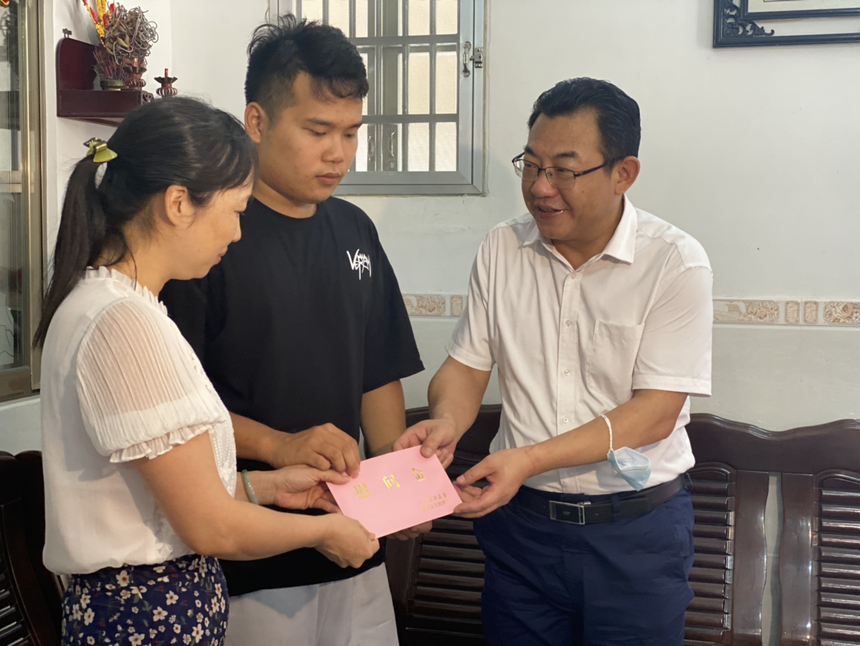 随后,刘端雄来到因公殉职党员林金城同志的家中,送上水果和慰问金,并代表县委、县政府向殉职党员家属致以最诚挚的问候和崇高的敬意。