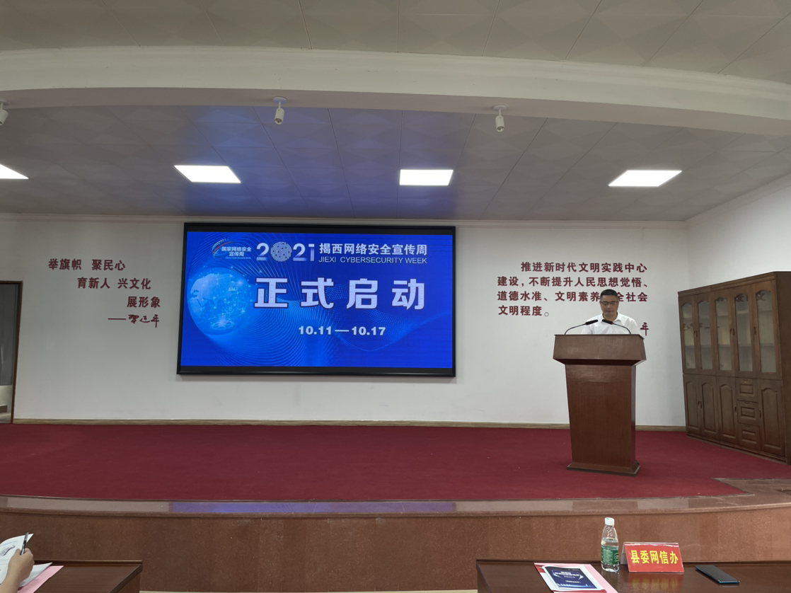 11日上午,我县举办2021年揭西县网络安全宣传周启动仪式,县委常委、宣传部长肖晓新参加活动,并提出了要求。