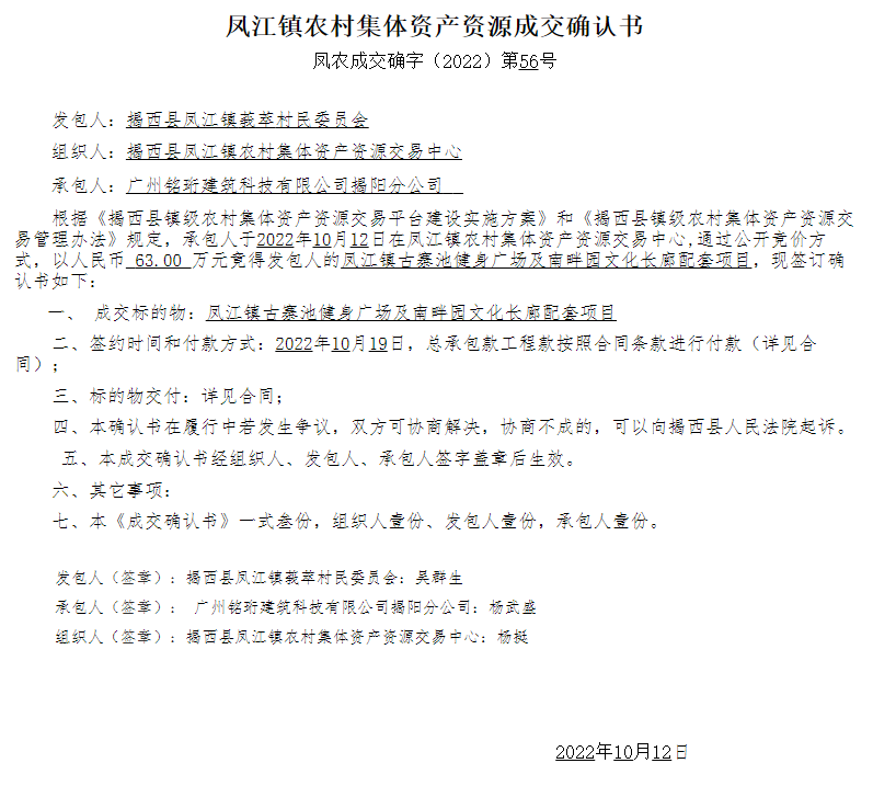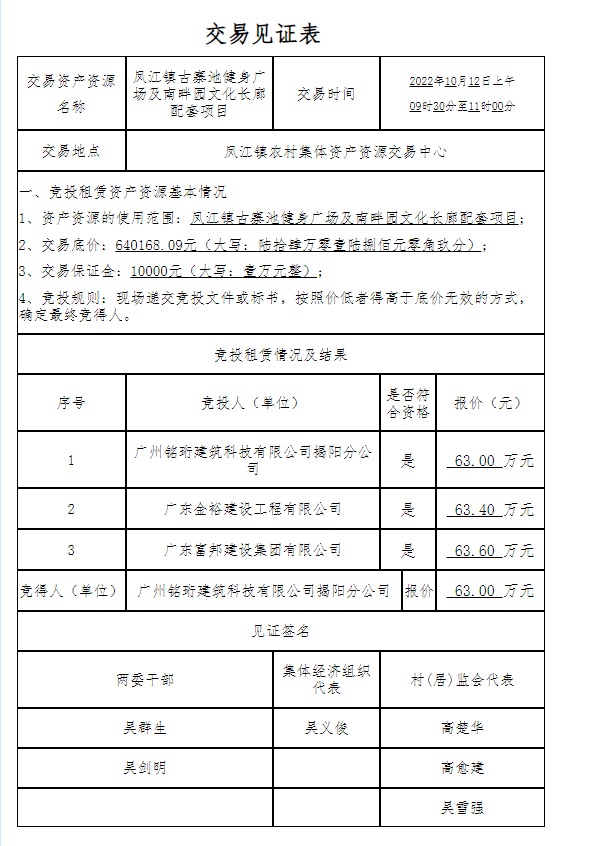 凤江镇古寨池健身广场及南畔园文化长廊配套项目中标公告