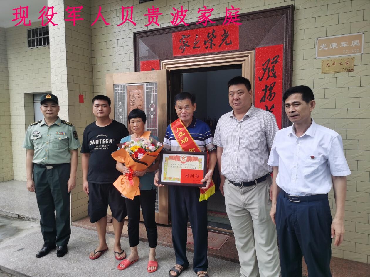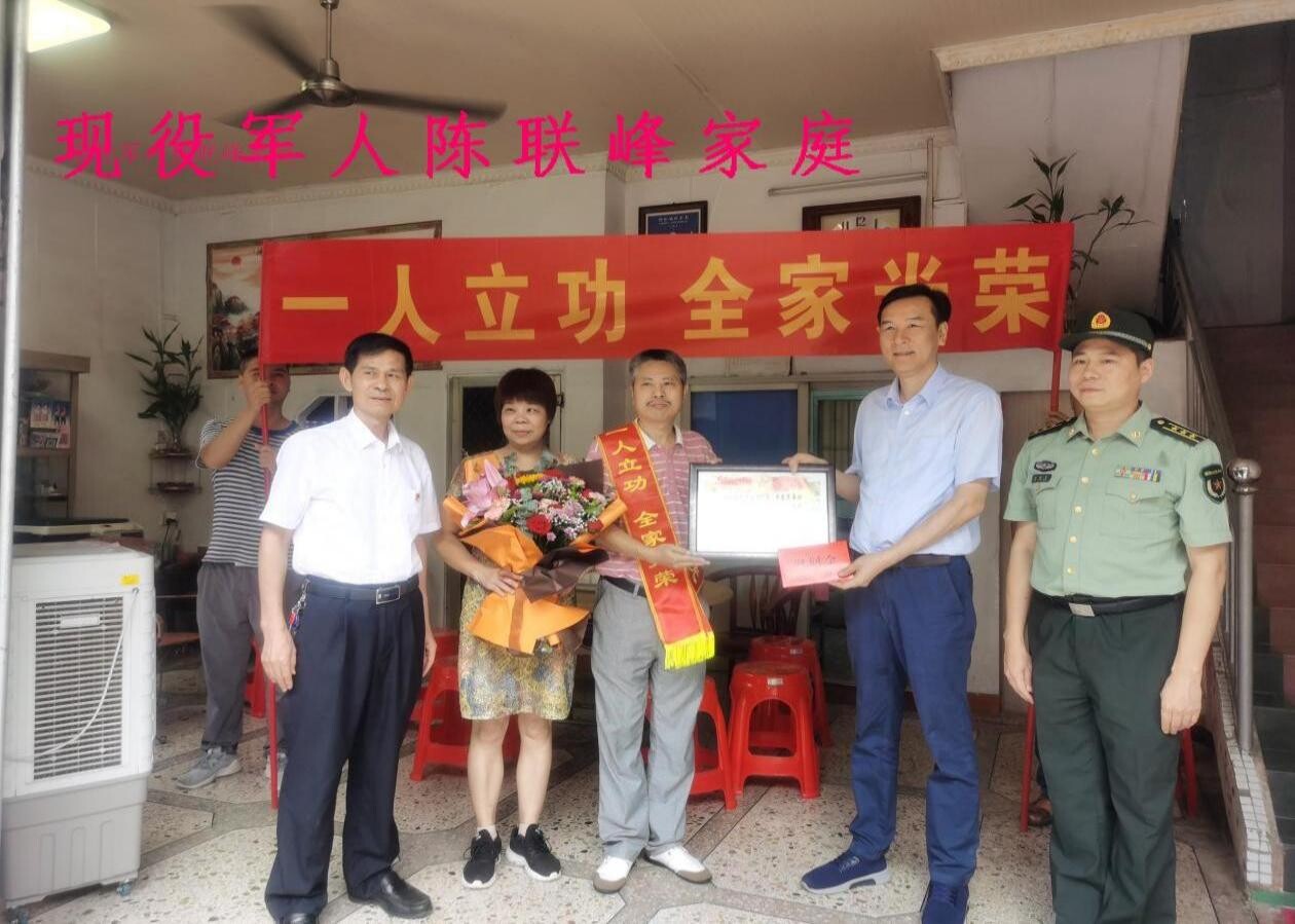 魏洁林、毛建中带队到灰寨镇为2020年度荣立“二等功”现役军人陈联峰家庭送上喜报、红色绶带、鲜花和立功受奖奖金,并与陈联峰家人亲切交谈,祝贺优秀现役军人在部队取得的优异成绩,对献身国防事业、履行军人职责保家卫国的现役军人表示崇高敬意,立功受奖不仅是家人的荣耀,也是揭西人民的骄傲。