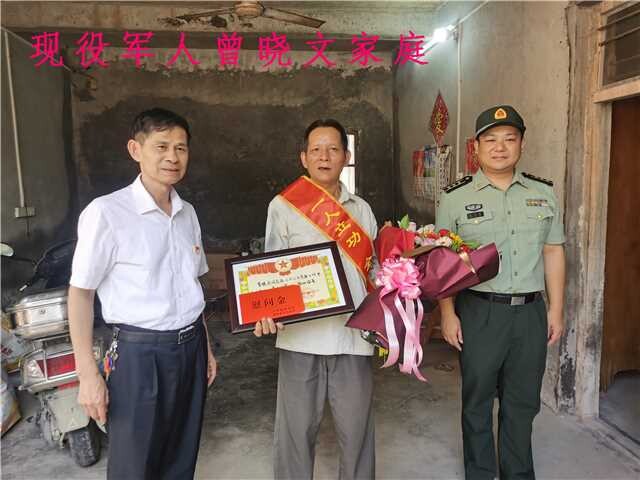 8月27日至31日,县委常委、县人武部政委毛建中、副县长陈永年、县人武部部长张书境带队先后到荣立三等功现役军人邓南锋、李庆庆、陈千千、曾晓文、曾锦标、陈奕炫、郭伟青、王树鑫、李旭斌、林俊彦、林俊龙、林征世、李志鸿、蔡友松、贝贵波等15名荣立三等功的现役军人家中,为军人家属佩戴了“一人立功,全家光荣”绶带,并将喜报、证书、慰问金送到家属手中,与他们亲切交谈,详细了解孩子在部队服役情况、对他们为部队培养出优秀人才致以衷心的感谢和崇高的敬意,让家属切身感受到党和政府的关怀与温暖,激励军人珍惜荣誉、崇尚荣誉,激发建功军营、练兵备战的精神动力。同时,希望军人家属继续支持孩子、鼓励孩子在部队安心服役,让他们以更加饱满的精神状态投入国防事业之中,为部队、为家乡增光添彩。