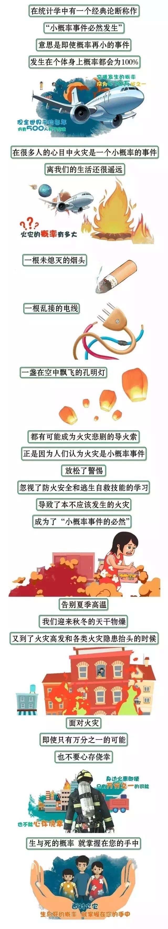 在很多人心中,火灾离我们很遥远,可事实真的是这样吗?统计学中,有个经典论断叫做“小概率事件必然发生”……而生与死的概率,就掌握在我们自己的手中。