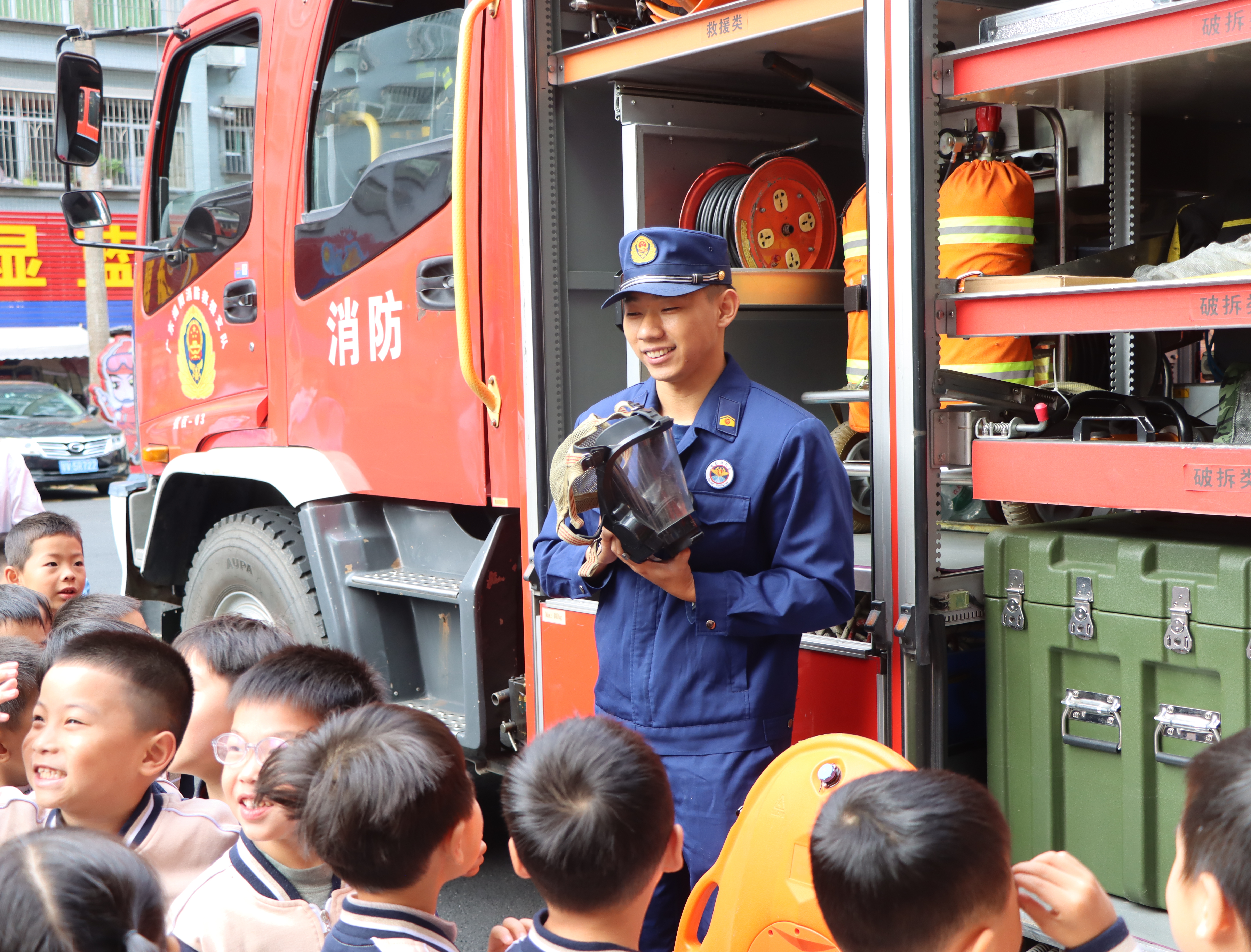 为筑牢幼儿消防安全“第一道防线”,切实增强幼儿消防安全意识与自防自救能力,近日,金色摇篮幼儿园师生走进揭西消防救援局参观体验,学习消防知识。